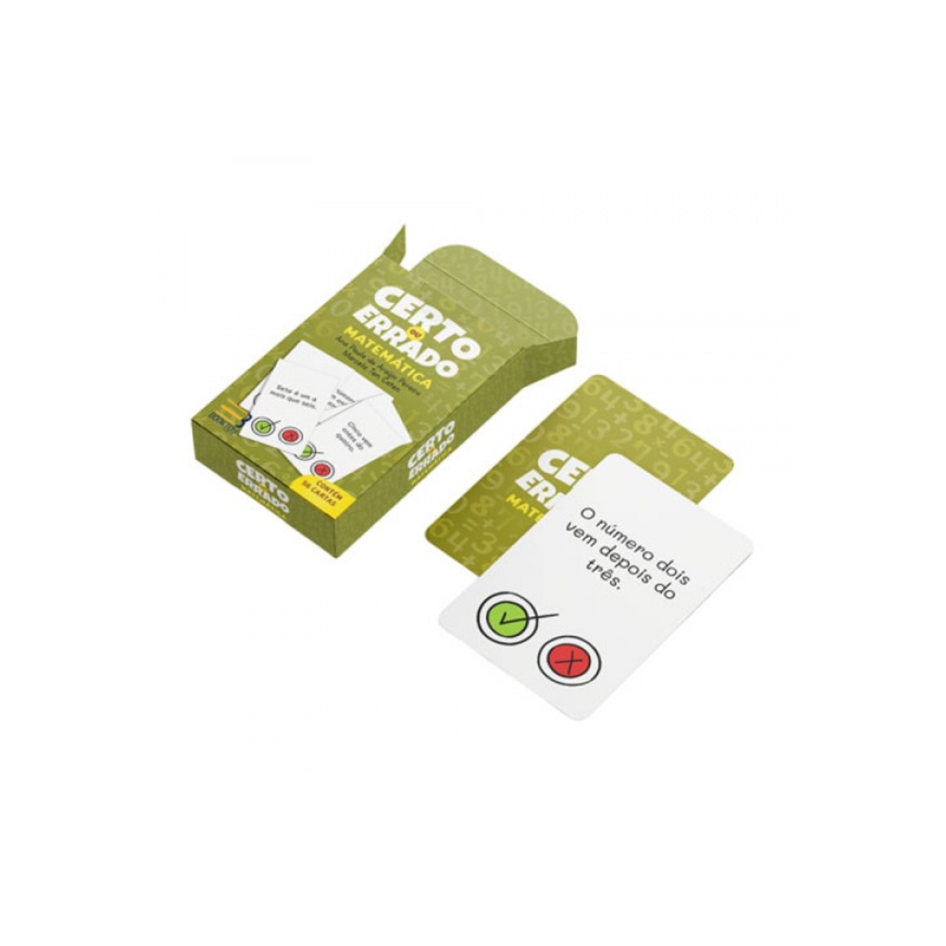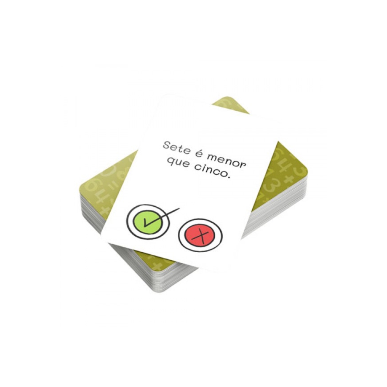 Este jogo de cartas contém frases simples com expressões matemáticas para a criança decidir se a afirmação é falsa ou verdadeira.