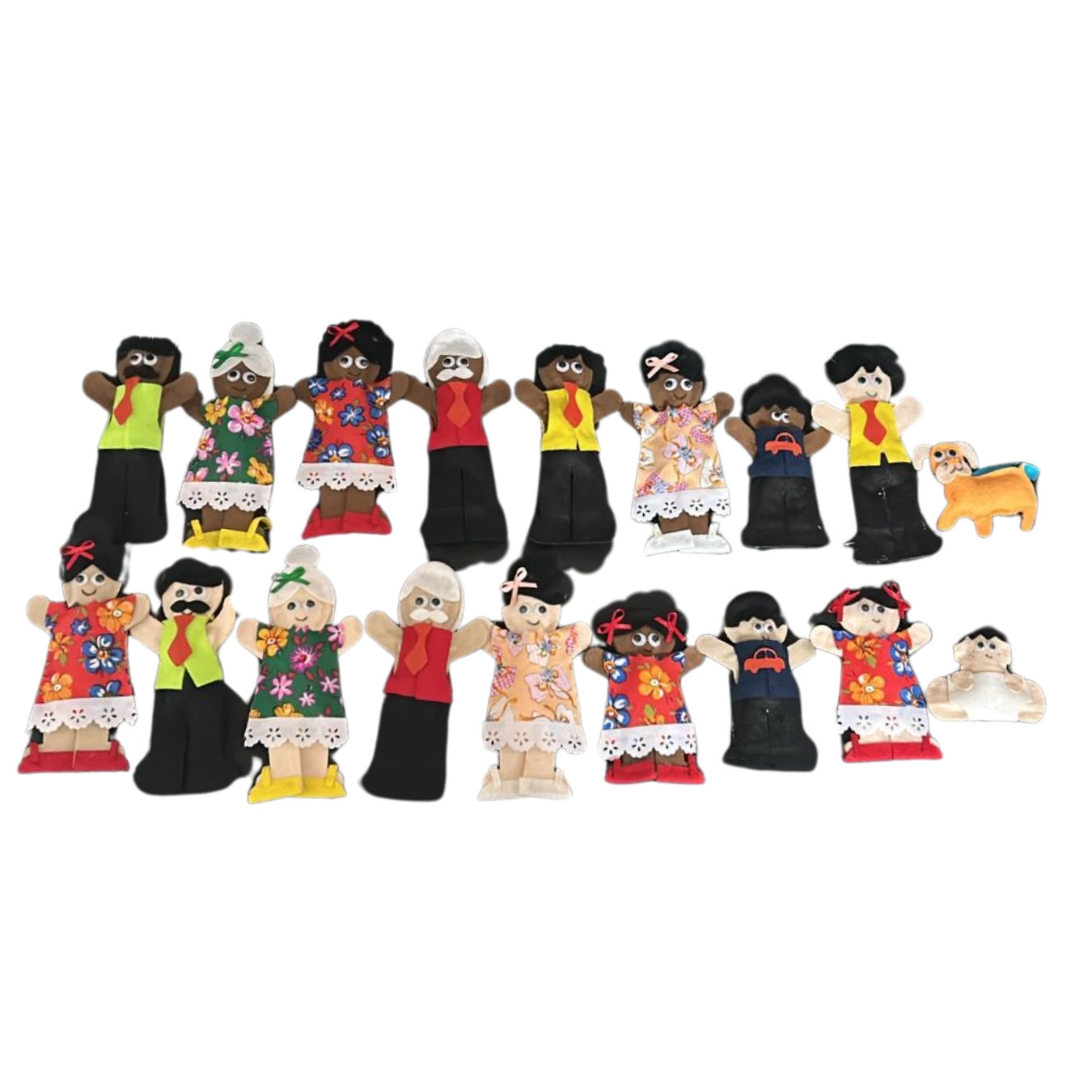 A Família Terapêutica é formada por bonecos que representam a estrutura familiar, sendo utilizados por profissionais conforme a necessidade de cada situação. Trabalho realizado com matérias de alta qualidade, feito a mão. Ideal para compor caixa lúdica em consultórios e escolas aplicado por profissionais como: Psicólogos, Psicopedagogos e Pedagogos.