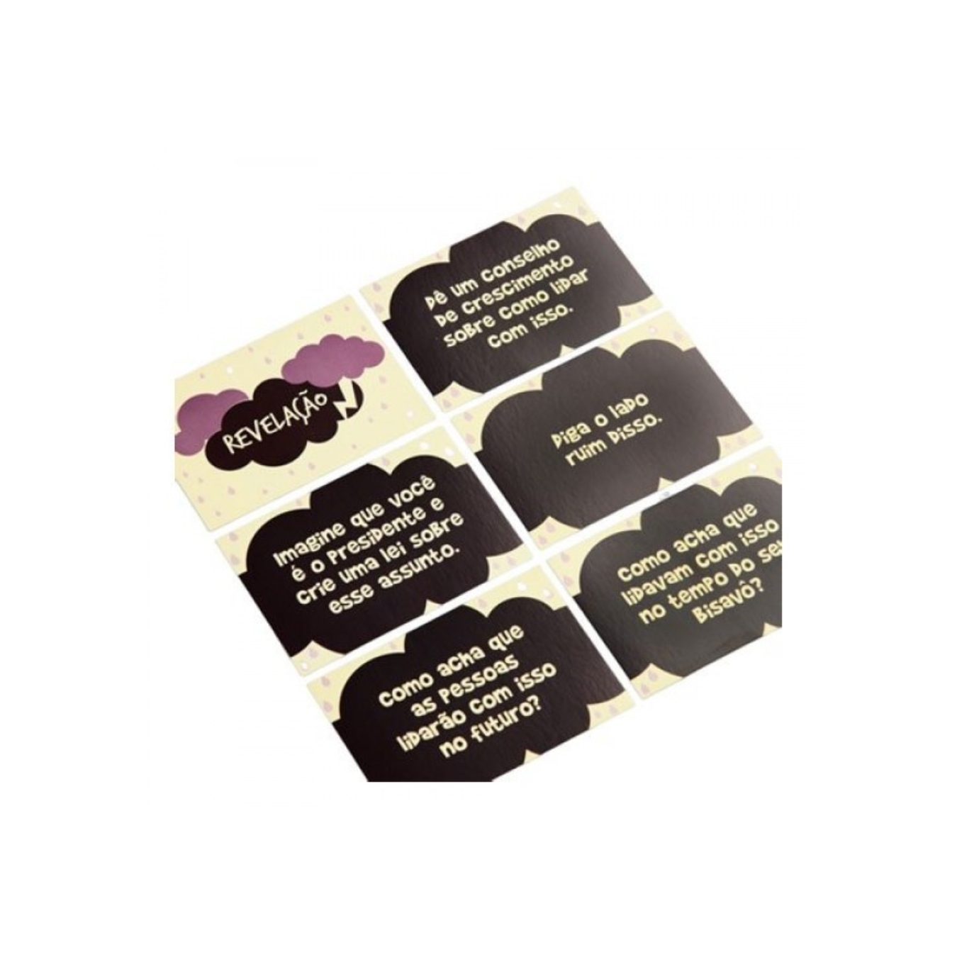 65 cartas perrengue / 18 cartas revelação / 6 cartas melhor não